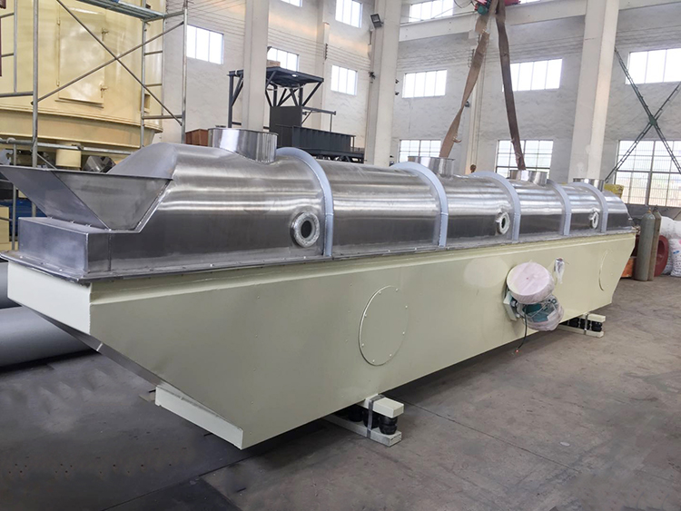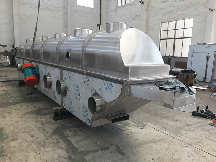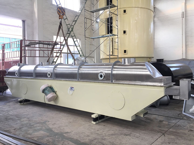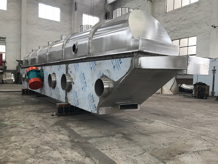 流化床干燥机是由物料自进料进口进入机内,在振动力作用下,物料沿水平面流化床抛掷,向前连续运动,热风向上穿过流化床同湿物料换热后,湿空气经旋风分离器除尘后由排风1:3排出.干燥物料由排料进口排出。适用于化工、制药、食品、脱水蔬菜、粮食、矿产等行业的粉状、颗粒状物料的干燥、冷却等作业。